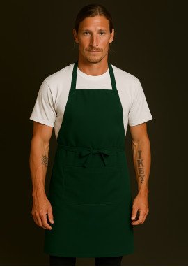 The JBs 86x93 Bib Apron in Bottle Green features an adjustable herringbone neck strap, durable waist..