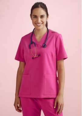 CST245LS - WOMENS PINK V-NECK SCRUB TOP